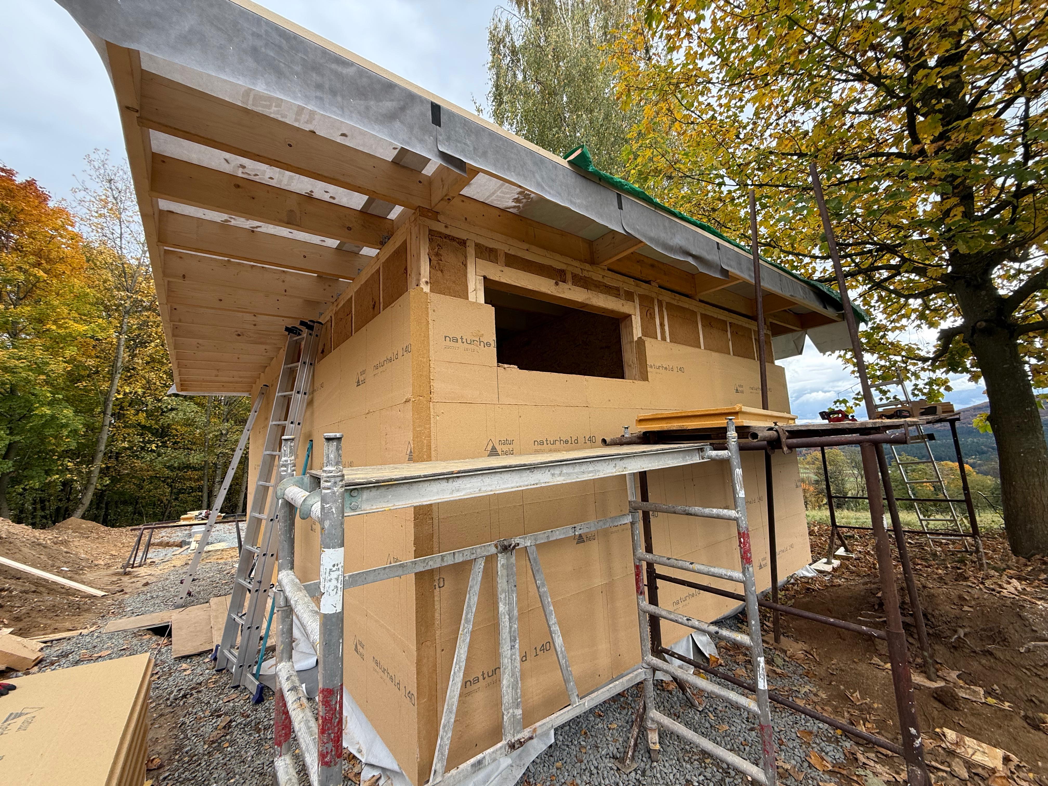 Dřevo, dřevovláknitá izolace a difúzně otevřená konstrukce pro maximální ekologičnost.